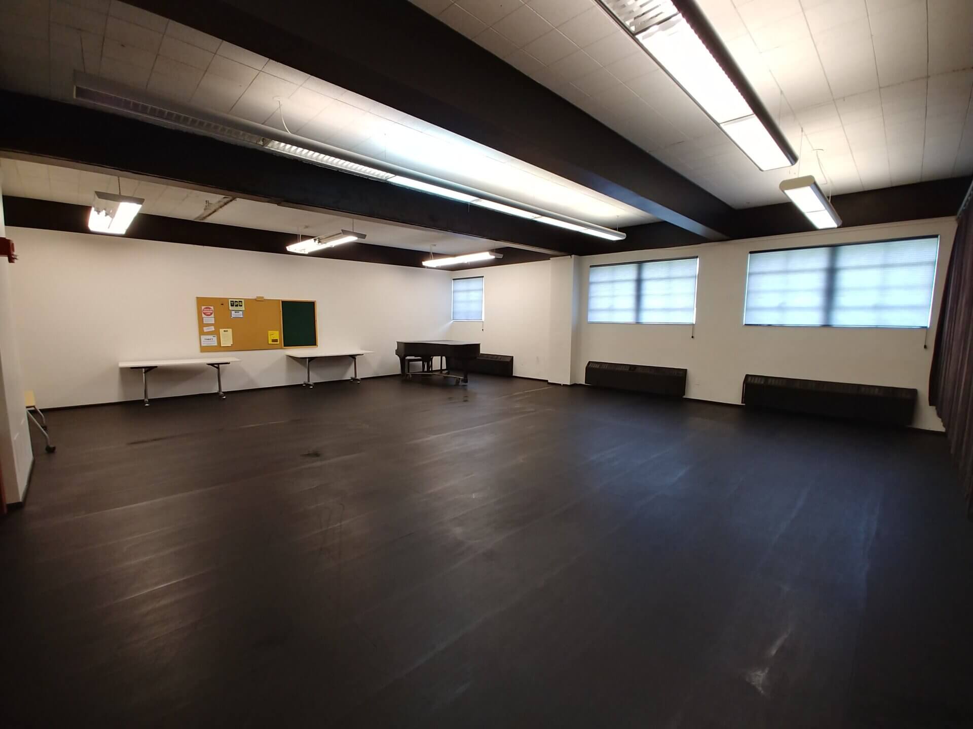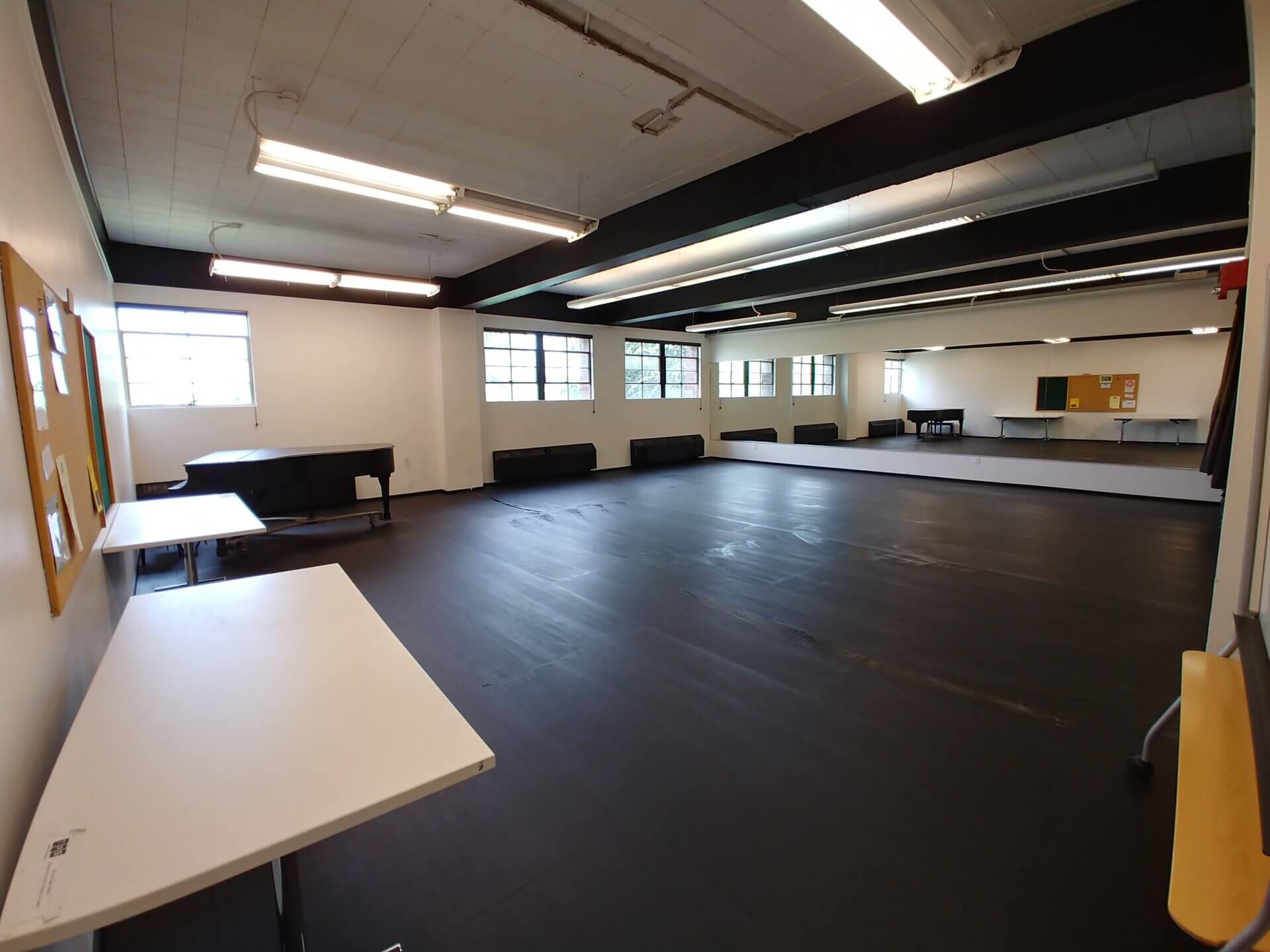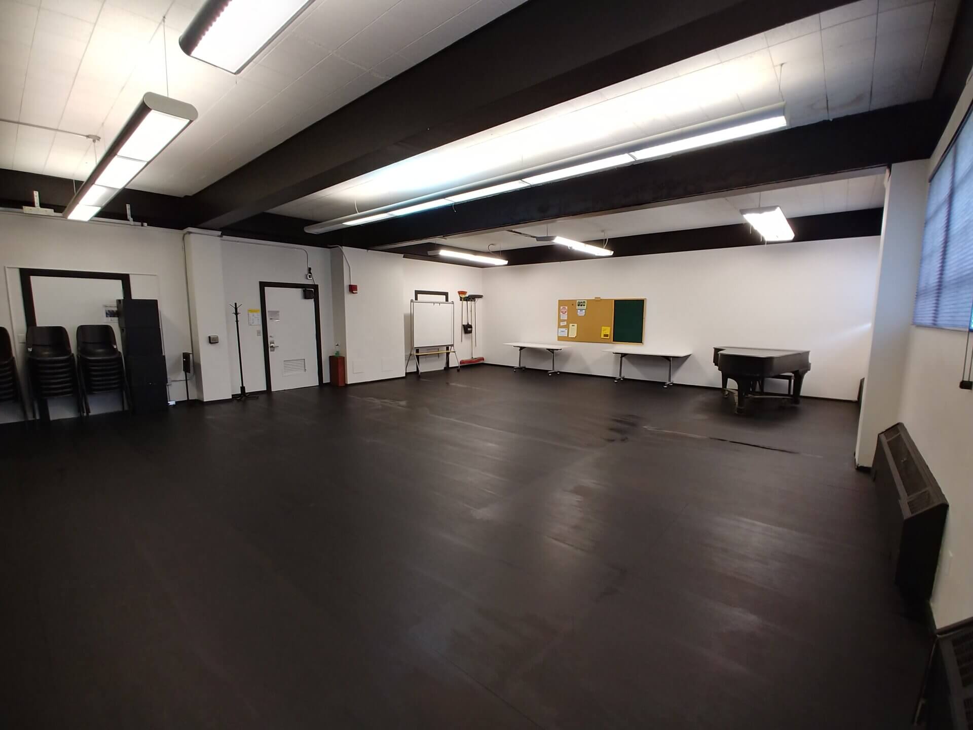 This studio is the largest of our more cost effective spaces. It has 120 extra square feet to stretch out in. It’s great for larger group rehearsals on a budget. This studio has a wall of mirrors and northern facing windows (a great view of Queen Anne). It is home to one of our full grand pianos.
